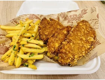 Kuřecí stripsy s hranolkami, tatarka