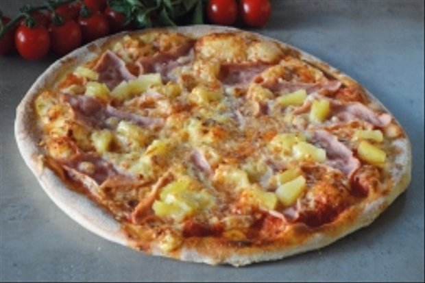 Rajčatová omáčka, sýr, šunka, ananas kousky, extra mozzarella